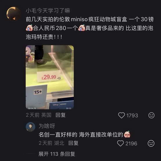 从 20 美元的颈枕和水杯,到打完六折还要 5 美元一颗的美妆蛋,海外门店卖着与国内门店相差无几的日用百货,价格却让家乡网友不敢相认。