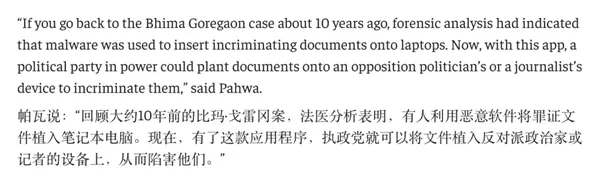 然后帕瓦就进一步指出,既然之前有这种例子在,那么保不齐之后执政党可以用这款应用将文件植入反对党或者记者的设备上,从而陷害他们。