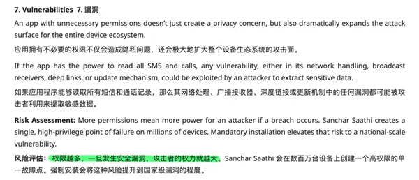 实现的功能与权限的范围存在巨大的不匹配,这是 sflc.in 认为 Sanchar Saathi 应用的核心技术矛盾点。