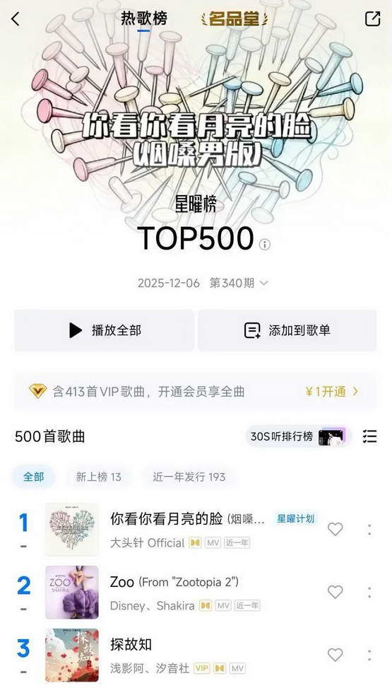 长生向惊蛰研究所介绍道:“现在有一些公司非常厉害,在酷狗音乐的 TOP500 榜上,经常可以看到 AI 歌登榜前十名,像最近特别火的 AI 音乐人‘大头针’甚至能够登上榜首。而过去专业人士创作的音乐作品,就算砸两百万下去做推广也不一定能进前十。”