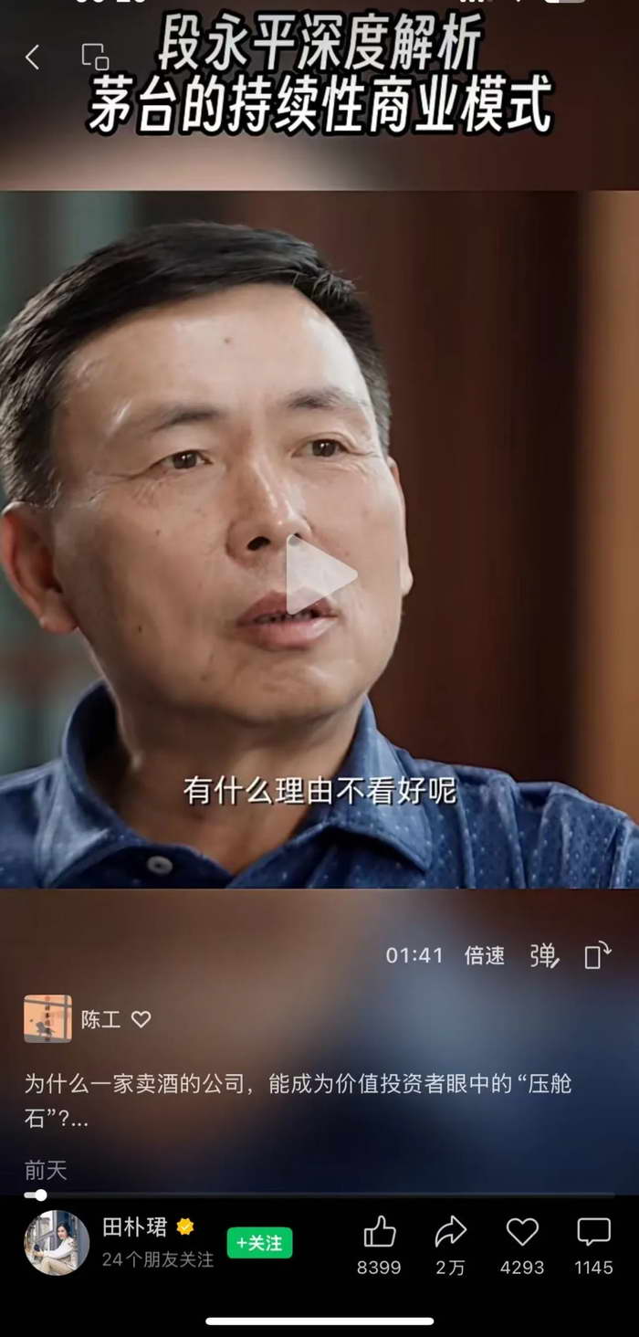 想起前两天,王石和田朴珺采访段永平,段永平提到依然看好茅台。