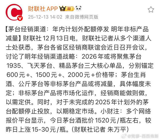 @荒谬 - 西西弗斯: 看了看茅台经销渠道的 26 年渠道战略,给大家做一下解读,也感慨一句,茅台本身也要面对凛冽的冬天了。