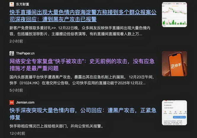 因为这事儿现在也没有一个定论,所以我们整理了一些目前比较主流的分析,还有几位网络安全从业者的看法,想试着推演一下,快手被攻击的背后,可能有哪些猫腻。