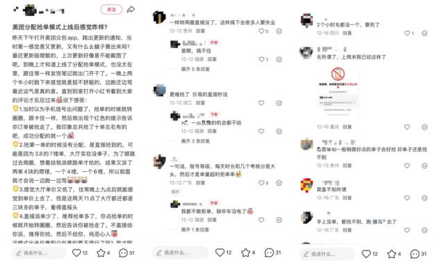据了解,美团的分配抢单模式是在 12 月中旬开始推行的功能优化,目前通过线上社交平台大致统计出,广州、东莞、佛山、长沙等地都已经开始实施了。