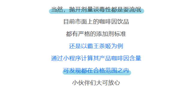 简单来说,只防你偷工减料,不怕你 “良心” 大发。就算霸王茶姬们咖啡因加加加加到厌倦,也并不违规。