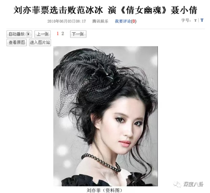 刘亦菲再次同套路选拔胜出《倩女幽魂》时,早先被涮过的周迅,为刘亦菲做过女二号的李冰冰,都已经站稳地位,成为了名副其实的大花旦,已和她不在一个层次。周迅是金马金像金鸡的三金影后,李冰冰拿了百花和金马奖,叫得响影视剧作品一大把,商业和影视资源已经超越自身所在的公司或平台。