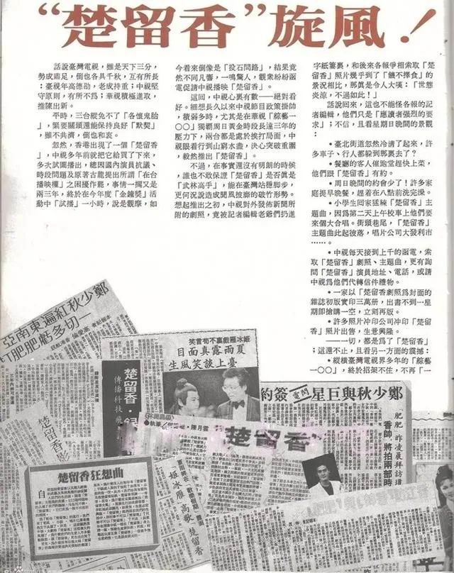 「1982.年,影响台湾社会最巨大的不是政治事件,而是港剧《楚留香》的播放。这是第一部正式引进台湾电视台的港剧。