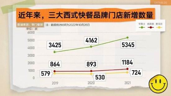 虽然肯德基、麦当劳也在疯狂开店,但和华莱士的扩张速度相比,还是慢了亿点点 。