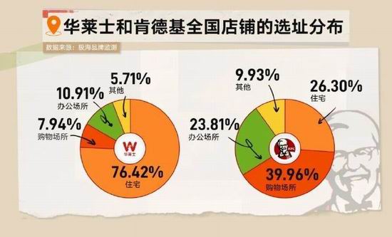 如果和肯德基对比,你会发现华莱士的开店门槛并不高。76.42% 的华莱士开在社区、街边,像车站、学校这种人流量密集的场所也是首选。