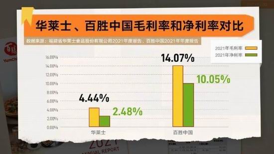 但华莱士,正陷入 “大而不强” 的发展瓶颈。华莱士的毛利率从 2019 年的 6.8% 下降到 2021 年的 4.4%,净利率也保持在 2% 左右的低水平。