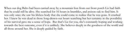 “她根本不是什么‘销售员’,只是十分相信自自己所从事的东西而已,”Evans 在这封辞藻造作有如情书一般的信中写道,“她对于自己让世界变得更美好这件事拥有宗教般的狂热和虔诚,而她身边的每个人都非常希望她的虔诚能够成为现实。结果就是我们和她一起,相信了不可能的事情。”