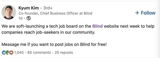 打开 LinkedIn,在那些因为被裁员而在寻找工作机会的帖子下,总是充满着来自陌生人的关心、鼓励以及各种新工作机会的推荐信息。匿名职场论坛 Blind 不仅专门为受到裁员影响的人开设了论坛浏览权限,还宣布将很快推出一个科技职位招聘专区来帮助被影响的人们尽快找到工作。