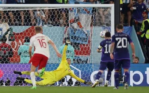 波兰守门员什琴斯尼,上半场挨了阿根廷 14 发射门,其中 9 发命中门框范围,然而全部扑出;第 39 分钟,他打到梅西面部,被吹了一个点球,但奋勇扑出了梅西的半高球。