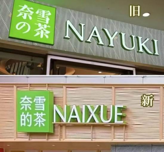 从广西南宁一个网友所发的小红书中可以看到,在当地一家门店门头上,以往奈雪的茶 logo 里标志性的日文平假名 “の” 换成了汉字 “的”,英文的 “NAYUKI” 也变成了中文拼音 “NAIXUE”,网友们猛一看甚至怀疑是遇到了山寨店。