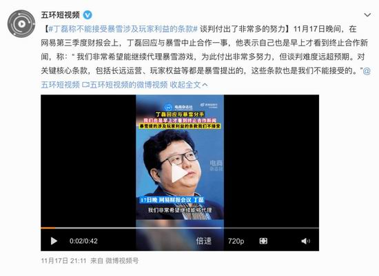 丁磊曾直接回应与暴雪合作中止一事