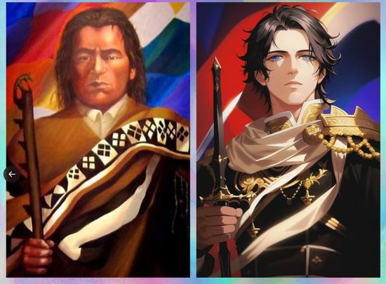 比如有人分享了以南美洲知名历史人物为原图的生成结果。特别是衣服样式和装饰的生成效果,十分令人惊讶.——.画手要是都这么用心,漫画迷们可有福了: