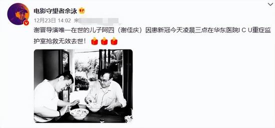 谢晋去世之前最放心不下的小儿子,还是不幸离开了人世,大批网友和谢晋曾经的影迷纷纷留言表示悼念。