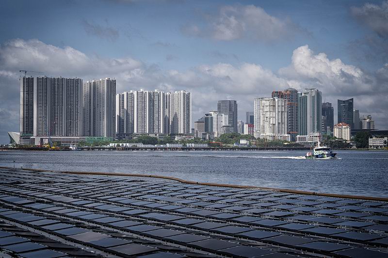 新加坡漂浮式光伏电站。 图片来自视觉中国