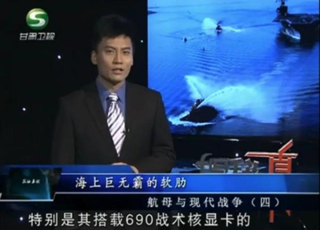 2014 年,甘肃卫视制作一期关于航母和现代战争的节目,文案借鉴了百度百科上的部分内容。恰好,有好事的网友将 “核显卡” 这个梗编进了百度百科:“搭载 690 战术核显卡的火箭推进榴弹,一发就可以摧毁一个航母战斗群”。