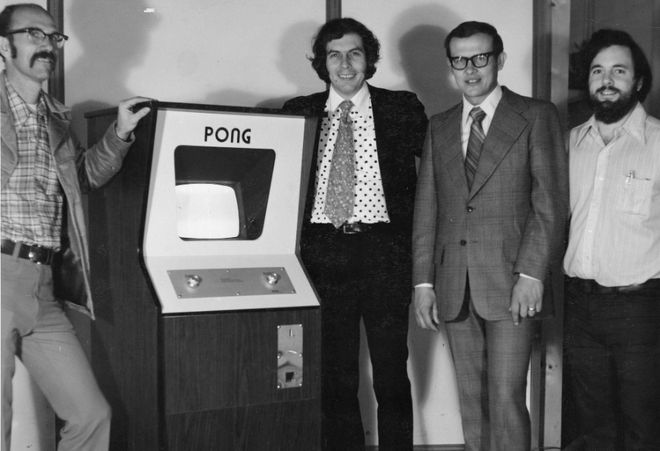 PONG 是一台有一块黑白屏幕和两个操纵杆的巨型机器,即我们现在熟悉的 “街机”,需要投币开机,游戏玩法类似乒乓球。1972 年,布什内尔推着第一台商用游戏机走进了小镇的一家酒馆,结果第二天晚上,老板就告诉他机器坏了。