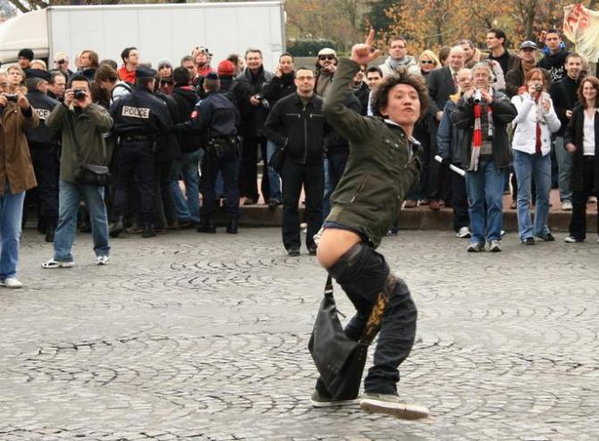 这图片就不要发了吧,那家伙是个涨肚分子,嘴型是F字头的,印象中是08奥运前在法国(德国?)的抗议活动……