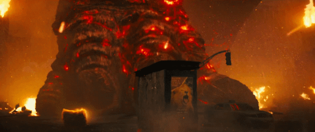 目前已知的是,《哥斯拉2》里的哥斯拉已经近乎“究极进化”了,核弹充能,通体发亮,边自爆边袭击,现实里要是真有这么一只大怪兽地球早就玩完了。小小一只金刚对它而言,简直是青铜挑衅王者。