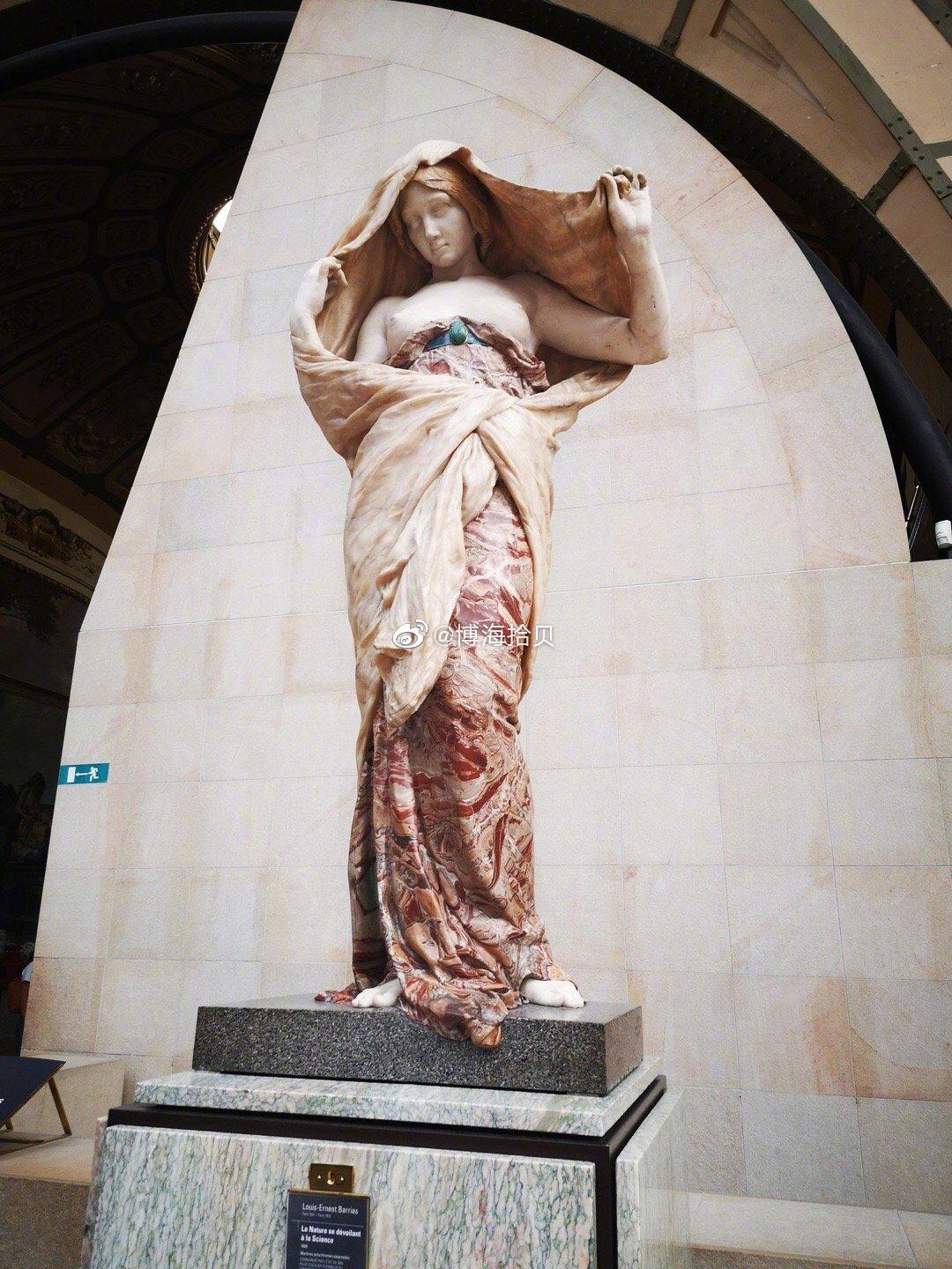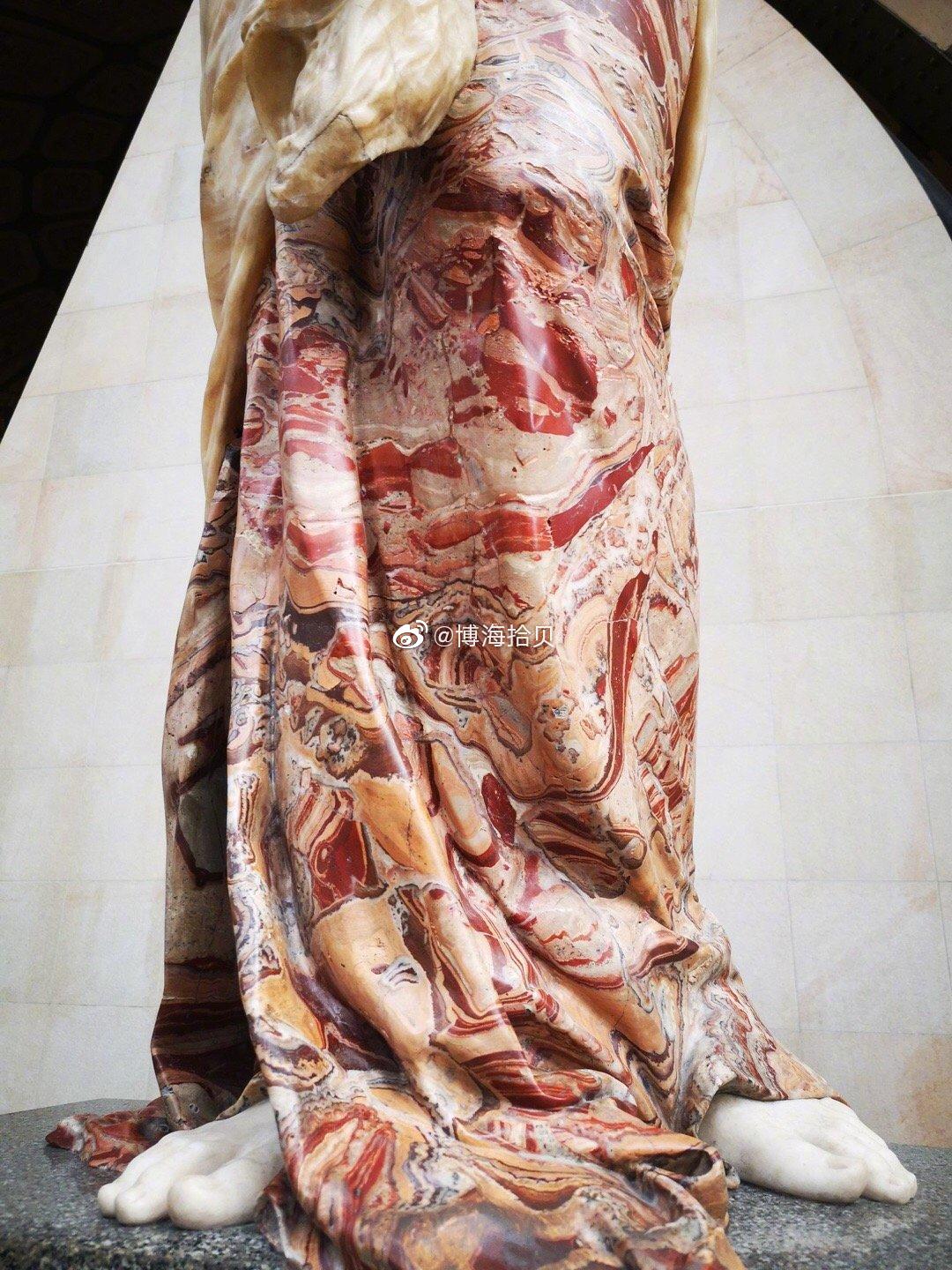 奥赛美术馆所藏的意大利雕塑作品,仔细看来,裙上的花纹竟是巧用了石材天然的纹理流动...太佩服了