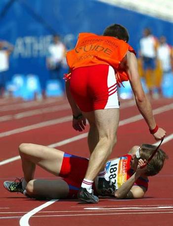在美国纽约,有一位年轻的警察叫亚瑟尔,在一次追捕行动中,他被歹徒用冲锋枪射中左眼和右腿膝盖。3个月后,当他众医院里出来时,完全变了个样:一个曾经高大魁梧、双目炯炯有神的英俊小伙现已成了一个又跛又瞎的残疾人。
