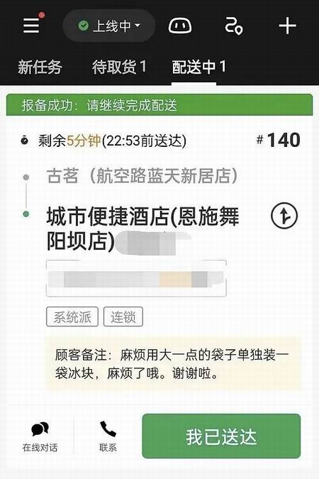 一些时候你并不能得到自己想要的订单,但更多时候你通过在群里有效地收转订单,就能够组织起来同一个方向的."大水".单,一般这意味着携带至少四个订单的远征。假如你用光了自己的机会,这时候就需要召唤."大哥"--.也就是队长来人工转走订单。队长也积极地参与到订单交易过程中,而对其."大哥".的称呼,也算是骑手内部共同体文化的一种体现。