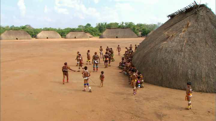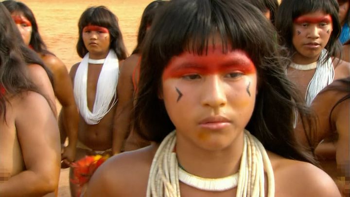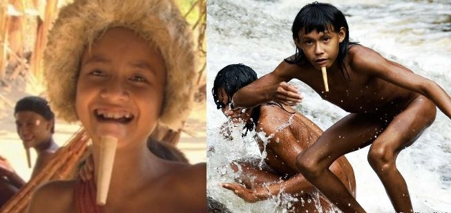 部落的人大多都在身上和脸上涂满了红色的颜料,但大家可能也注意到了,他们中间有一个纯黑色的人,并非是没有涂满颜料的原因,他的脸型明显与其他人不同。这的确是一个非常奇怪的问题,亚马逊一带土著的身体和面孔特征与印第安人差不多基本属于一个人种,难道他是很久以前从现代社会流落至此的一个黑人家族仅存的硕果,或是返祖、基因突变?不与这个原始部落发生接触的话,这个谜题难以解开,他到底是从哪来的呢?