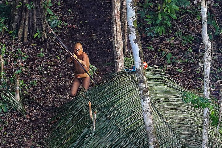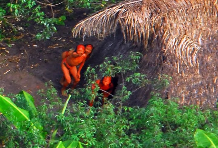下图是巴西保护土著人的政府组织FUNAI在2008年新发现的一个小部落,位于秘鲁和巴西交界处,地面上的人惊恐的用弓箭瞄准了飞机。
