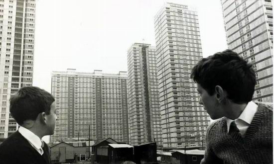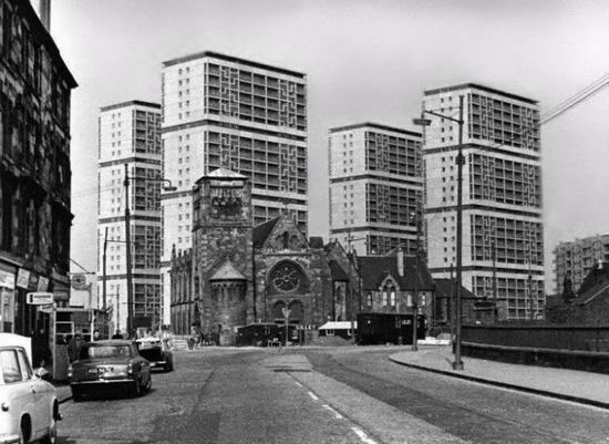 1968.年英国格拉斯哥,近处的教堂在高层住宅小区下显得矮小不堪