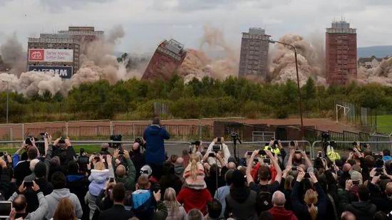格拉斯哥民众和媒体齐聚爆破现场见证大楼的最后一刻