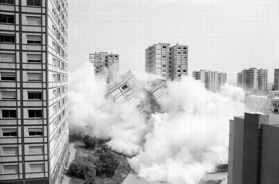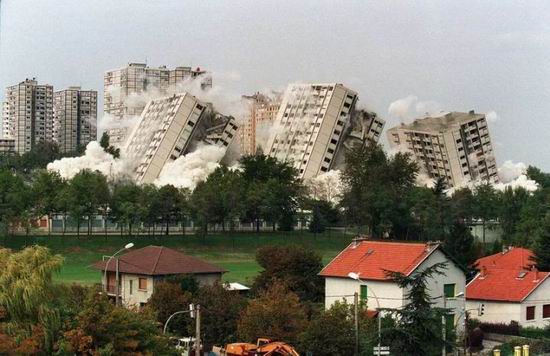 兴建于.1967.年的法国里昂都会区的.Minguettes.住宅区,仅仅不到二十年的历史,第一座高层塔楼便于.1983.年.6.月.9.日被定向爆破