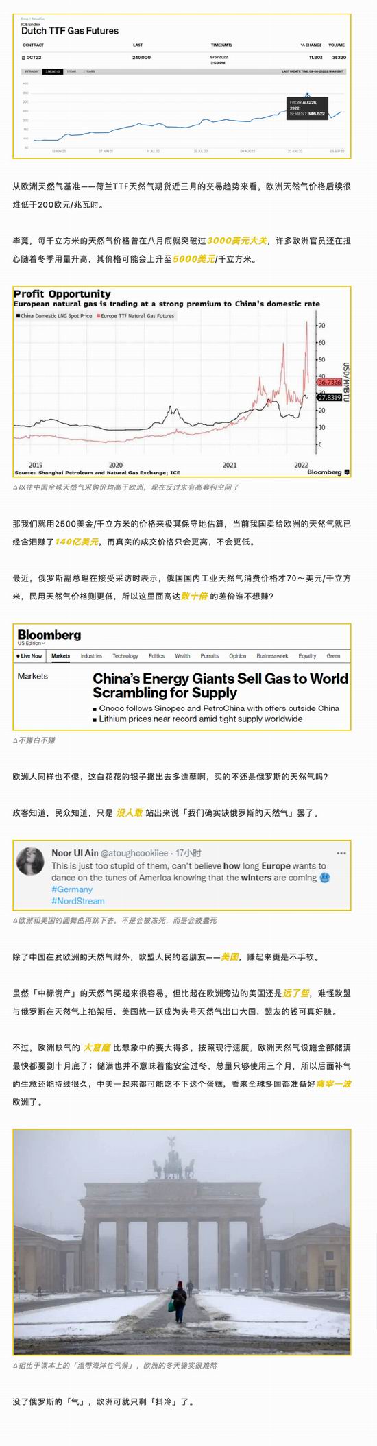 欧盟缺能气抖冷,中俄联美齐发财