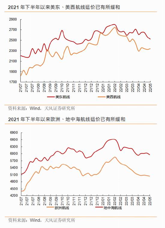 依据波罗的海集装箱运价指数来看,2021.年运价于.9.月份达到高位,今年以来随着集装箱供应紧张的问题逐步缓解,以及美国港口周转效率提升,运价进入.22Q2.之后加速下滑,运价回落至.2021.年.5.月底的位置,未来航运价格仍有继续下降的预期。
