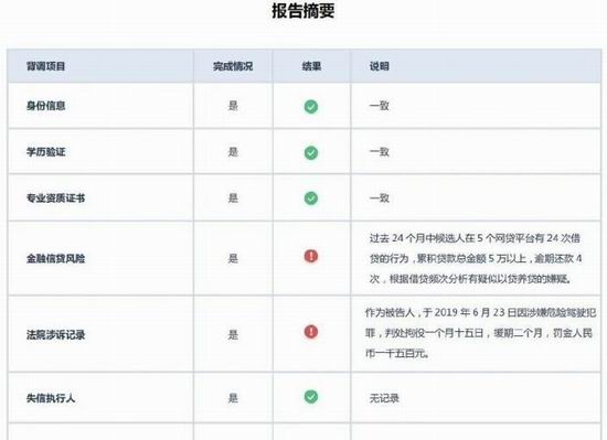 那么,在一个人不知情的情况下,背调员可以拿到当事人多少信息呢?多家公司资料显示,他们能做公民身份证验证、学历学位验证、工作履历核实、专业资质证书查询、职业资格证书查询、个人工商信息记录、法院涉法涉案查询、负面社会安全记录查询、网贷不良记录、金融业违规记录、涉金融领域黑名单、限制消费记录、限制出入境记录等。