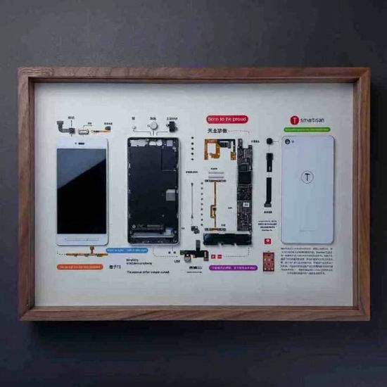 (图注:林西为用户定制的锤子T1手机装裱)