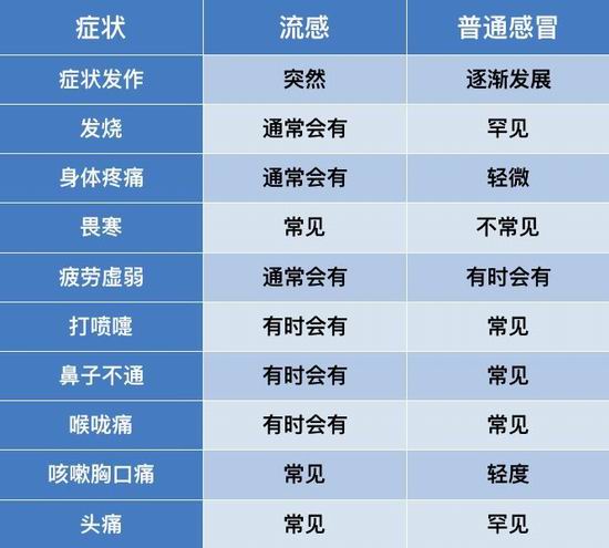 流感和普通感冒的区别