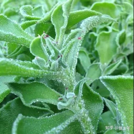 冰菜的叶面和茎上生有丰富的泡状细胞,里头富含液体。