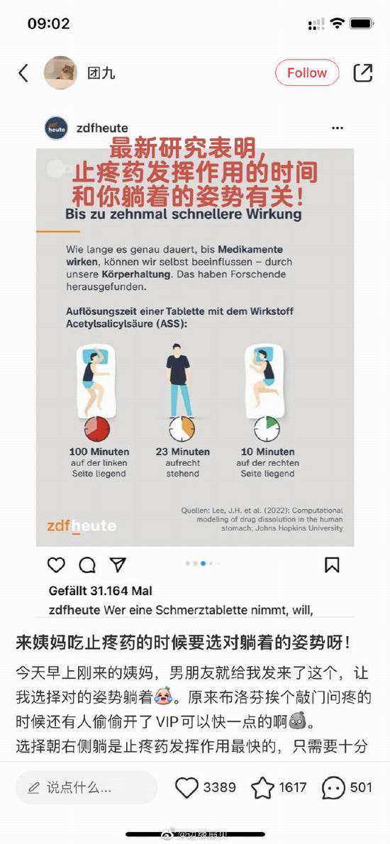 @小师妹灵珊:昨晚和几个已经转阴了的朋友吃火锅,其中一个直男说,他阳的时候吃了布洛芬,他不知道在哪儿看到一个资料 —— 吃下布洛芬以后向左躺着,药效发挥得快,然后,他一整晚都向左躺着,希望能快点起效。