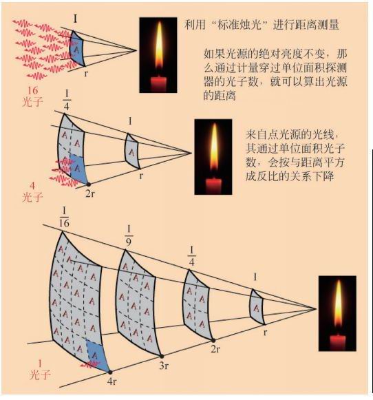 你可能会觉得有些不知所云了:“为什么如此简单的定律能开创一个全新的学科呢?” 答案是,它提供了一种全新的距离测量的方法,那就是著名的标准烛光。
