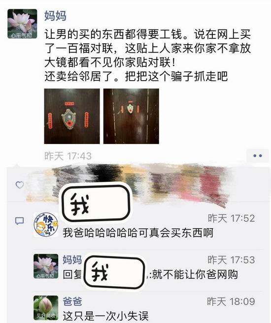 我爸最近刚学会网购,可算打开了新世界的大门。他买了好多东西。前两天和我说网上东西真便宜啊,他花 7 块钱买了一百幅对联。他说家里留一个。剩下 99 幅卖了他还能挣点零花钱