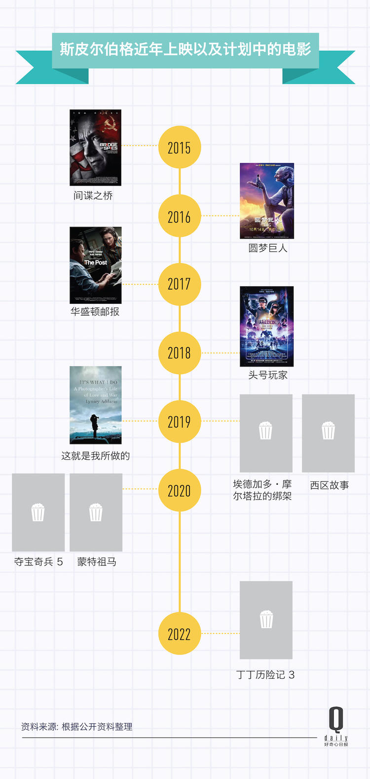 2015 年至今,斯皮尔伯格基本是一年一部电影的节奏。只需要浏览一下他的豆瓣页面就可以发现,他未来的档期排得有多满,项目包括了电影电视,角色包括导演和制 片。今年 71 岁的斯皮尔伯格档期已经排到了 2030 年。即使这些不能全部按时上映,斯皮尔伯格即将与观众见面的作品数量还是非常可观。