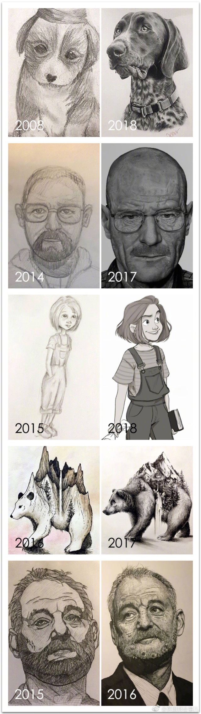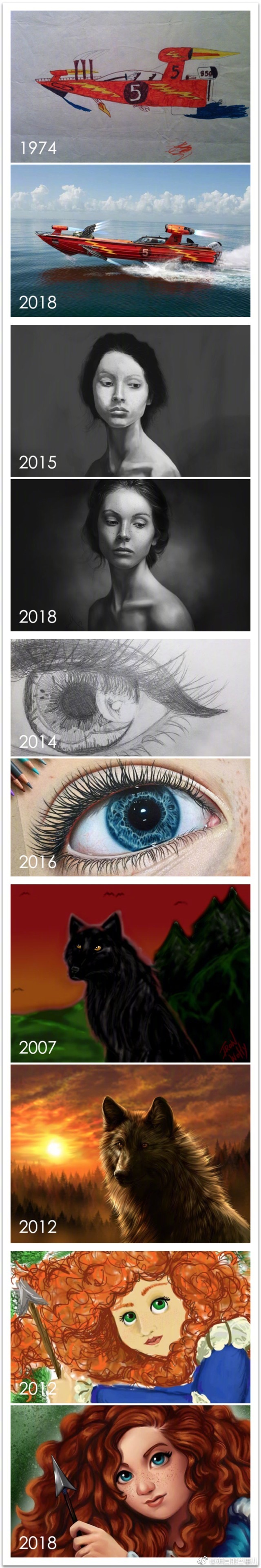 Boredpanda最近发起了一项挑战:“重绘你曾经画过的画”……多年过去,各路网友的画技进步简直惊人,“功夫不负有心人”最有力的证明啊!