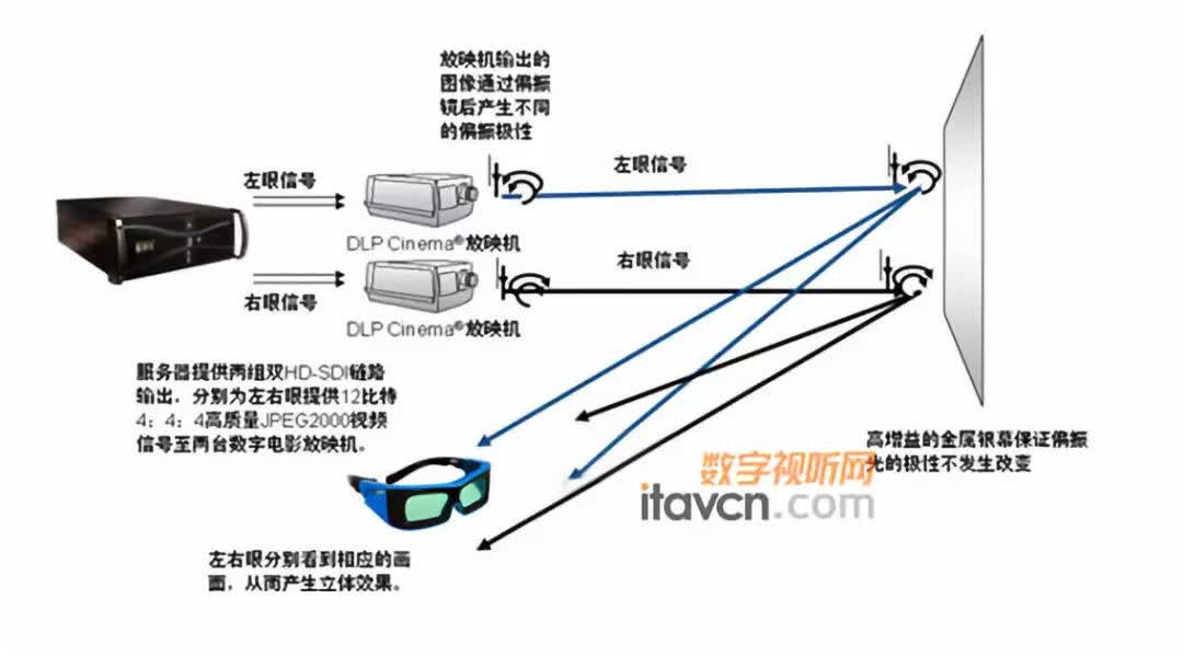 除了中国巨幕,还有些院线系统会用双机3D系统,也就是用两台放映机分别模拟人的左眼和右眼,能达到更高的亮度与解析度,院线方甚至称其效果不次于原装IMAX,万达系很多就采用这种解决方案。