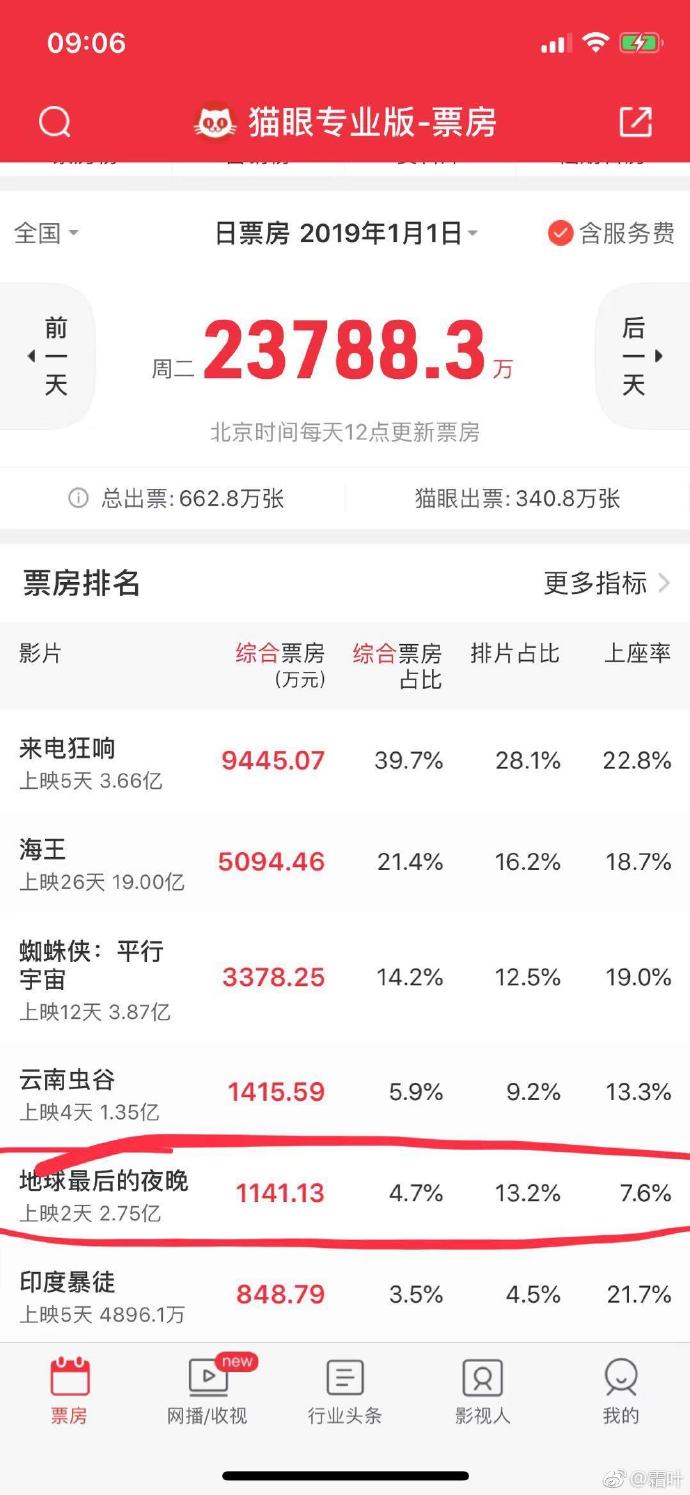@霜叶:【中国国产电影史上的奇迹出现了,票房暴跌95.6%】#地球最后的夜晚# 这部神片,