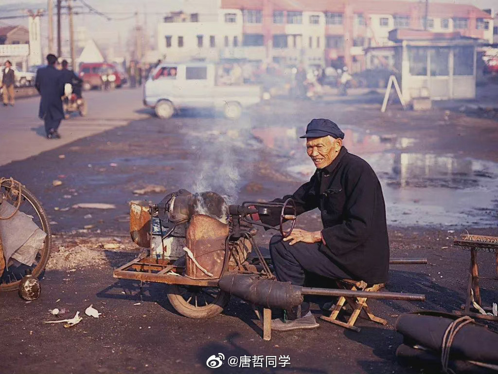 1998 年,上海。上世纪,一名参加过抗美援朝战争,来自安徽六安农村的退伍老兵,正在单手操作 “粮食膨胀机”。军帽檐下的白发,以及脸上的每条沟壑,仿佛都在诉说着岁月的沧桑。儿时最美妙的记忆,便是密封的铁罐,在火上呼呼的转动,大家都在紧张期待那 “嘭” 的一声…