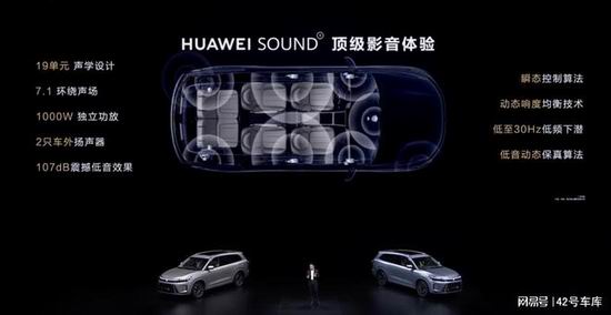 问界.M7.全车一共配备了.19.个音响,技术由.Huawei.Sound.提供,组成了.7.1.环绕声场。对了,这.19.颗印象中的.4.颗埋在了主驾头枕里,并支持模式选择。