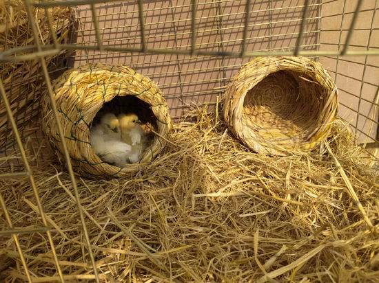 小鸡是自己孵化的,鸡窝也是自己手工编的